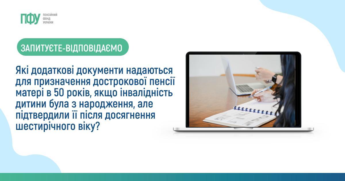 Які додаткові документи надаються для призначення дострокової пенсії матері в 50 років, якщо інвалідність дитини була з народження, але підтвердили її після досягнення шестирічного віку?
