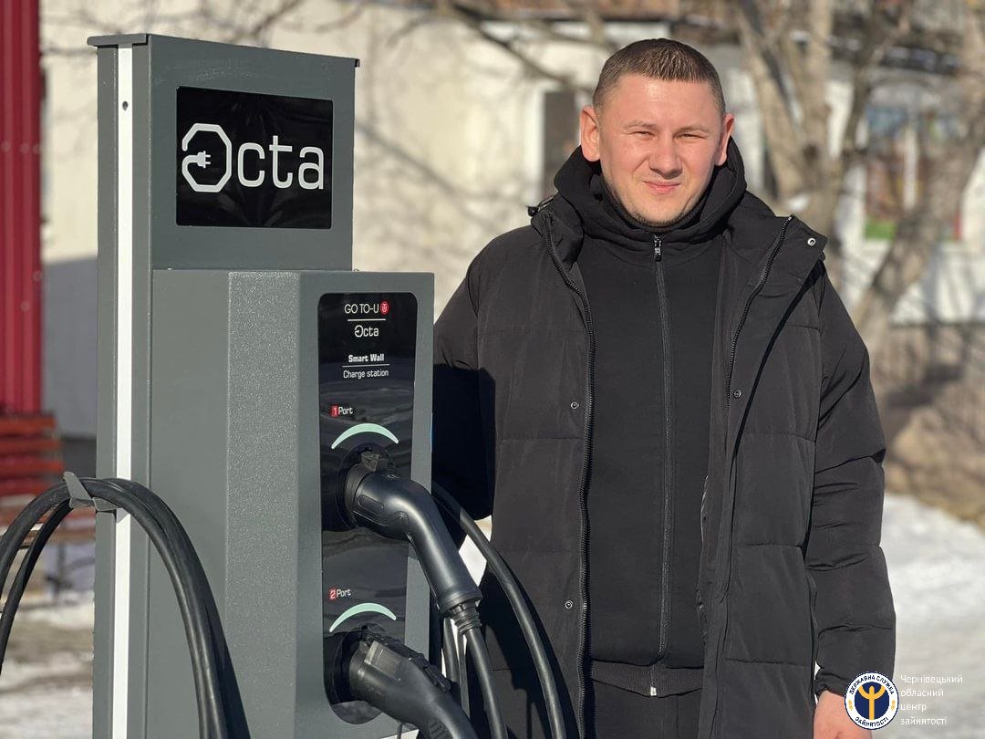 Зарядна станція для електрокарів у Новодністровську: підприємець розширив бізнес за кошти гранту від єРобота