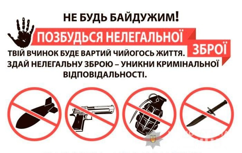 Громадяни, які добровільно звернулися до правоохоронних органів для здачі зброї, боєприпасів та вибухових речовин, що зберігаються незаконно, звільняються від кримінальної відповідальності.