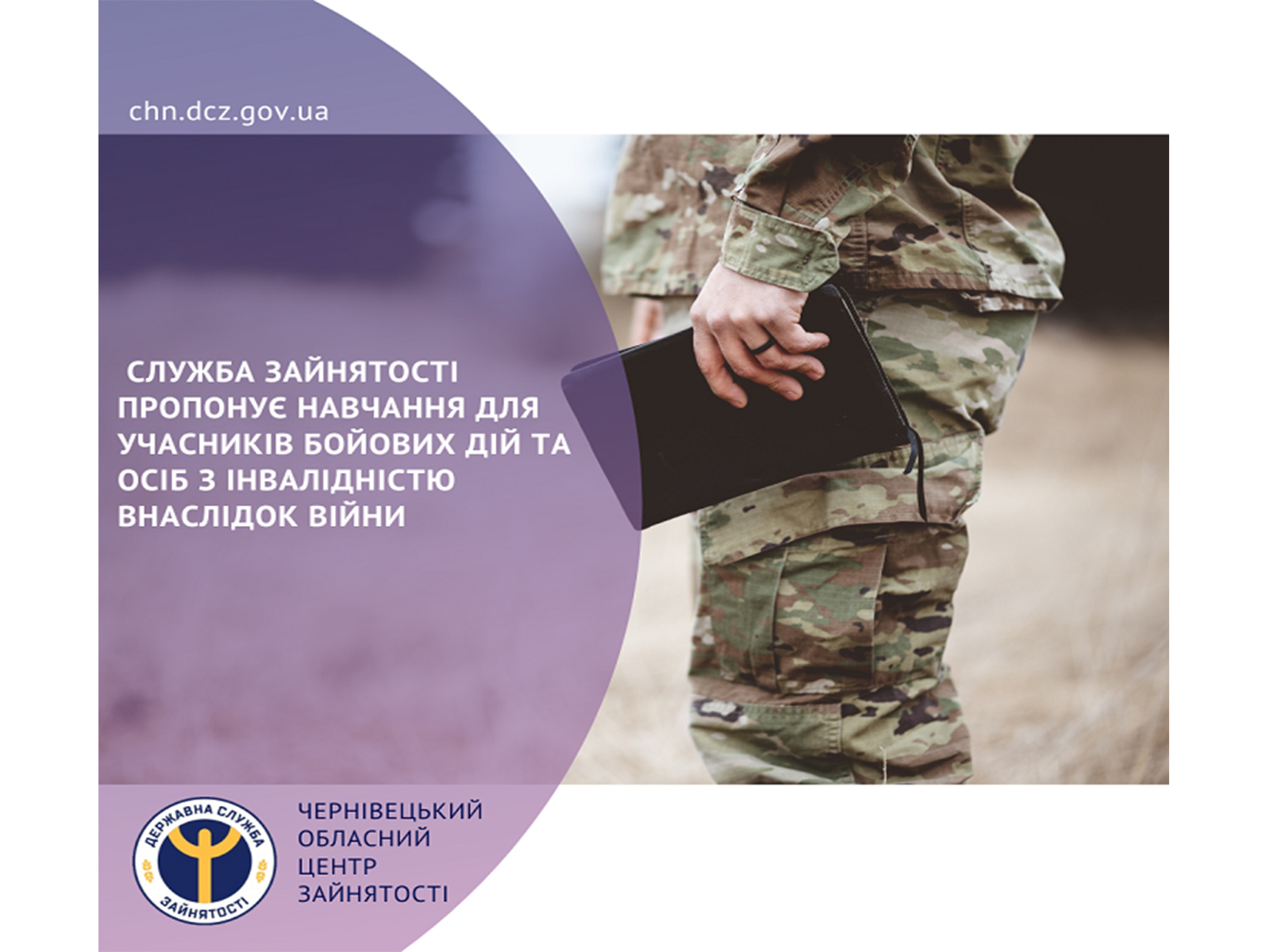 Колишні військові можуть безкоштовно здобути новий фах, пройти перепідготовку або підвищити рівень кваліфікації, у тому числі на курсах цільового призначення. При цьому професійне навчання для осіб з інвалідністю внаслідок війни організовується згідно з рекомендаціями медико-соціальної експертної комісії.