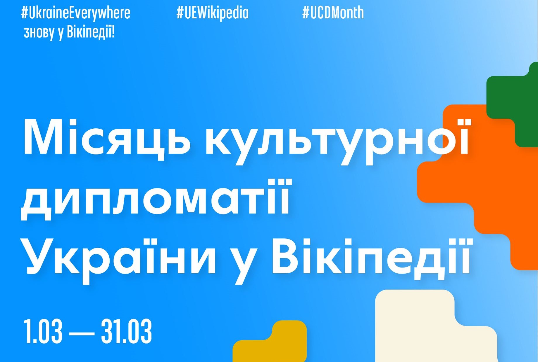 Із 1 до 31 березня Український інститут, Міністерство закордонних справ та ГО «Вікімедіа Україна» проведуть щорічну інформаційну кампанію «Місяць культурної дипломатії України у Вікіпедії». Кампанія має на меті збільшити кількість статей про Україну та її культуру українською та іншими мовами.