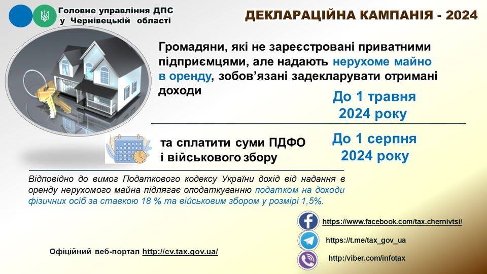 ахівці Головного управління ДПС у Чернівецькій області нагадують громадянам, які здають в оренду житлову чи іншу нерухомість та рухоме майно, про обов’язок задекларувати отримані доходи.