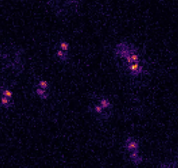 Атоми, захоплені в пастку, піддають дії додаткового лазерного променя, який стимулює їх випромінювати світло. Утворювана флуоресценція проявляється у квантовому газовому мікроскопі як злегка розмита кругла цятка.
