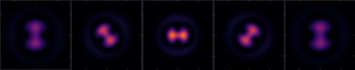 Різні напрямки «гантелей», що відповідають різному положенню атомів. Зображення: IAP/Uni Bonn
