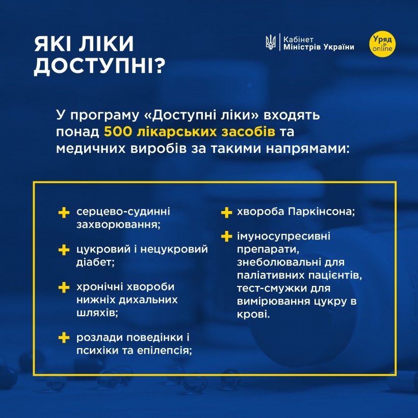 В Україні діє урядова програма “Доступні ліки”. За нею українці можуть отримати потрібні медикаменти безплатно або з невеликою доплатою.