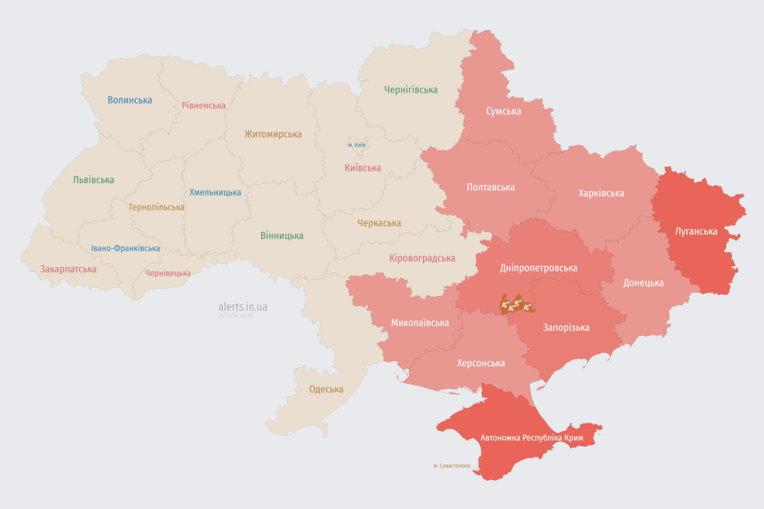 У низці областей на сході та півдні України було оголошено повітряну тривогу через загрозу балістичного озброєння.