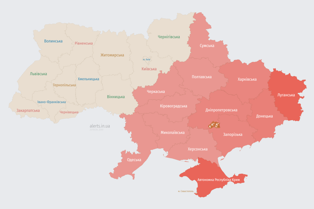 У східних, південних та частині центральних регіонів було оголошено повітряну тривогу через ракетну небезпеку.
