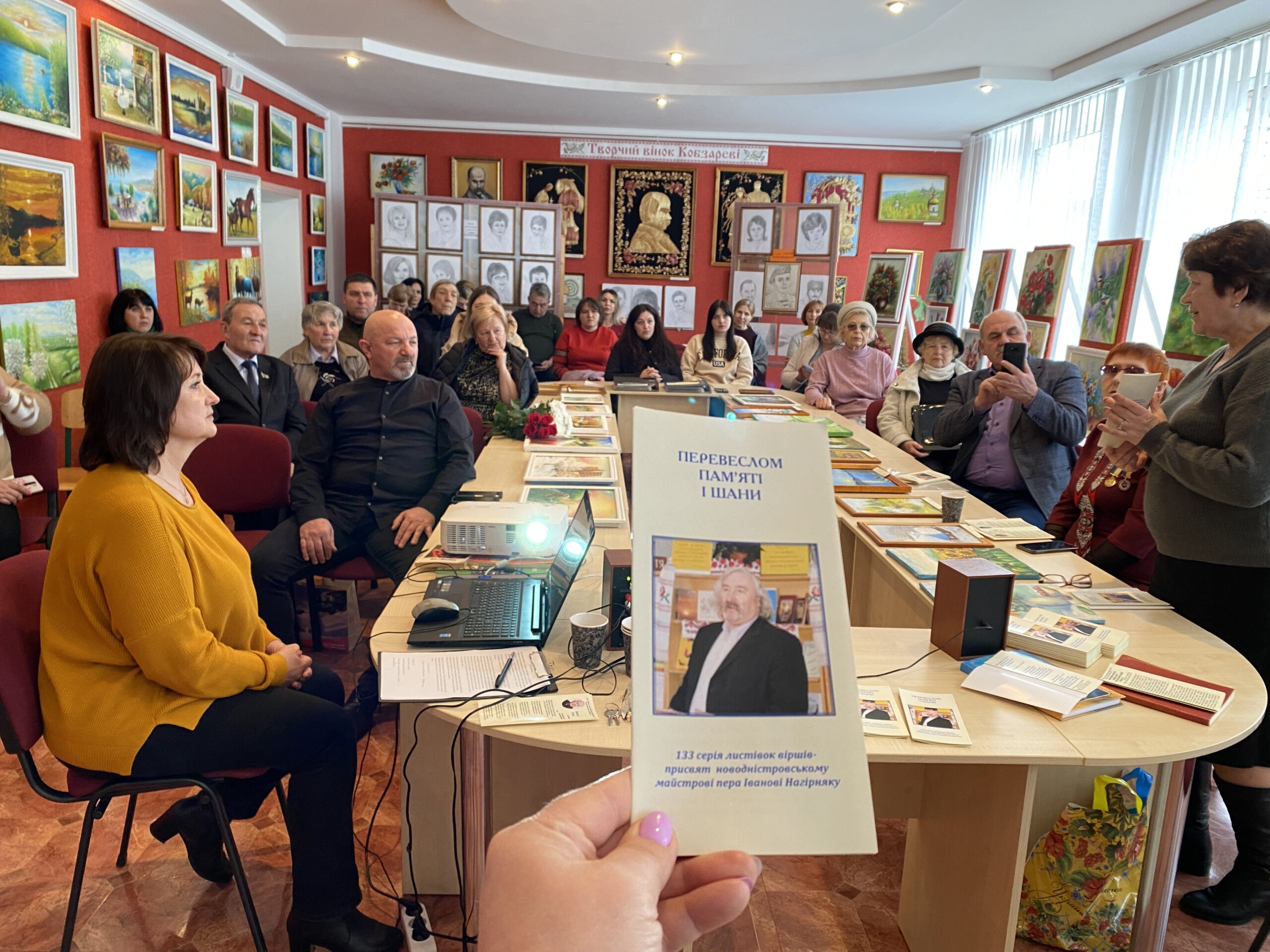 У земний ювілейний 75-й день народження Івана Семеновича Нагірняка серію листівок презентували у мистецькій залі Новодністровського історичного музею — це була, направду, щира родинна зустріч, за якою своїм до болю знайомим поглядом із портретів спостерігав незабутній «Почесний житель наших душ» і «Наш Буковинський Кобзар!..». Саме так я назвала свою передмову, у якій коротко розповіла майбутнім читачам про чудову людину і колегу по перу, котрий уже скоро 10 літ, як на Вічній правді (25.03.1949 – 1.09.2014).