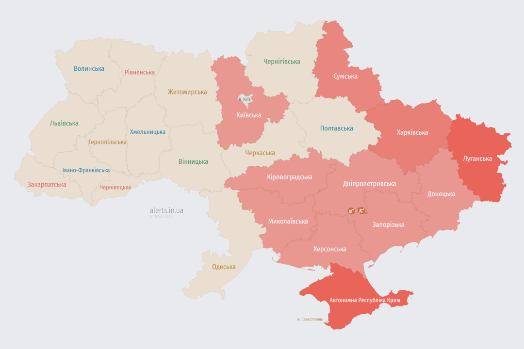 У низці областей оголошували повітряну тривогу через активність авіації РФ