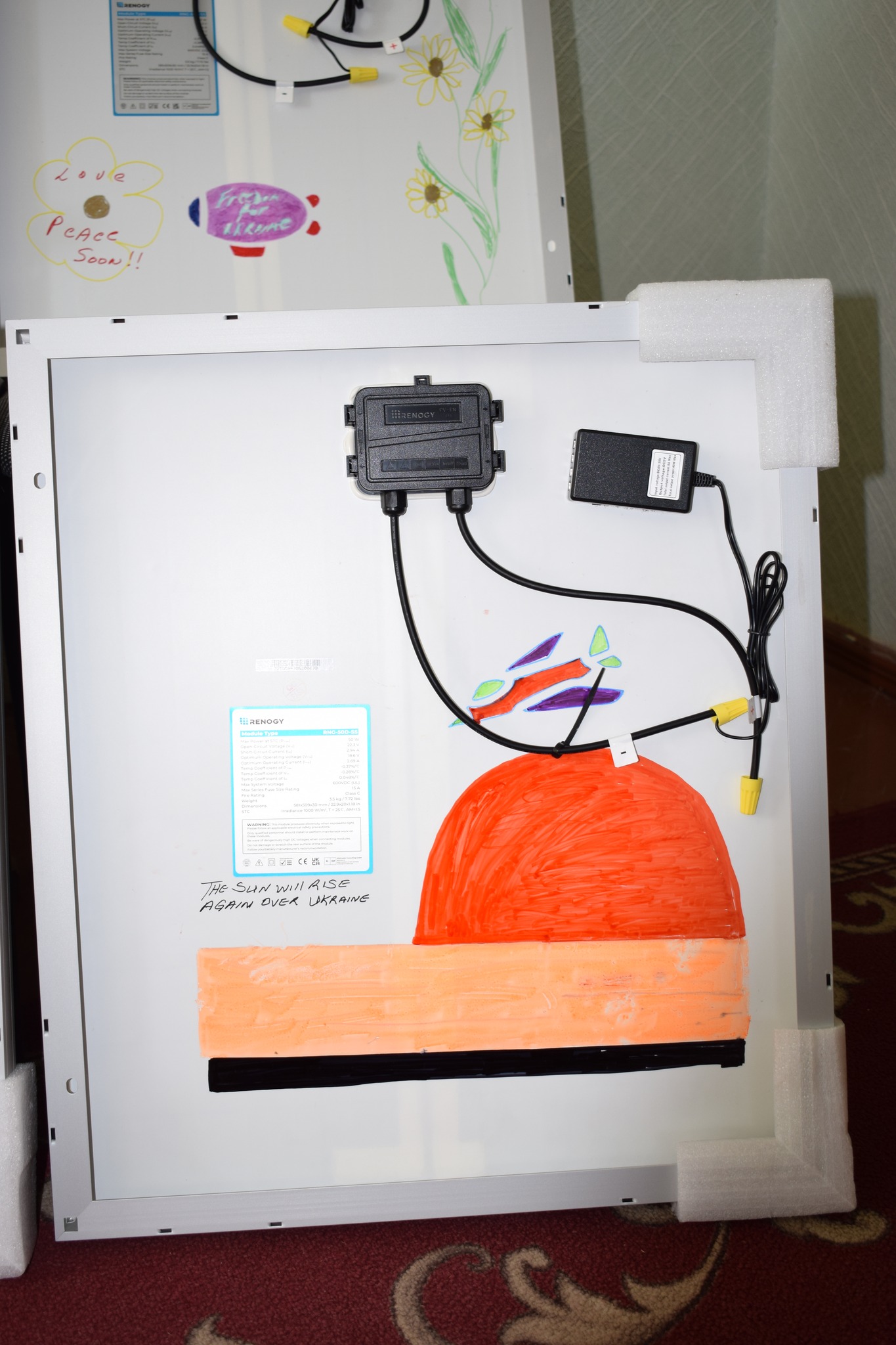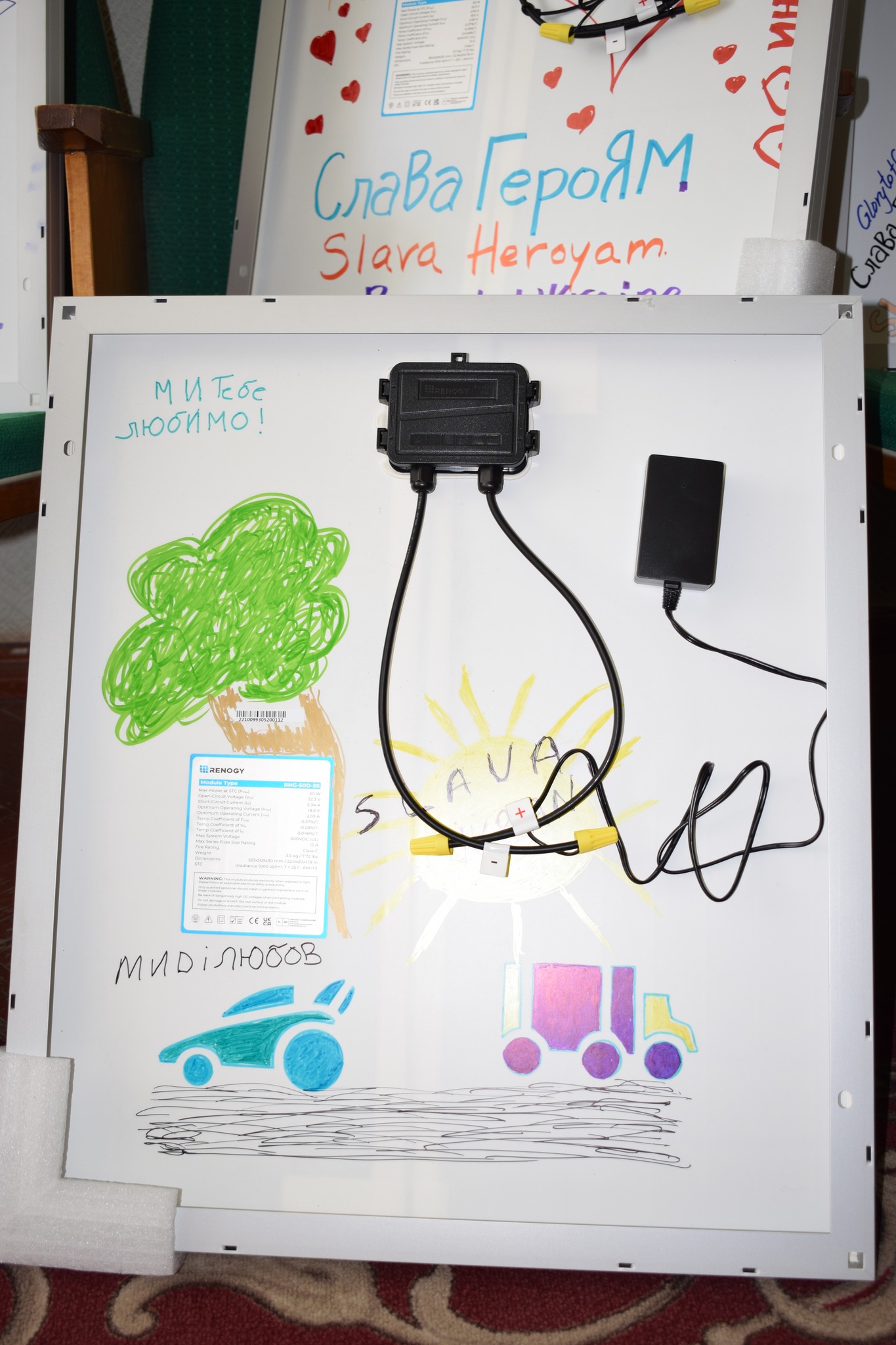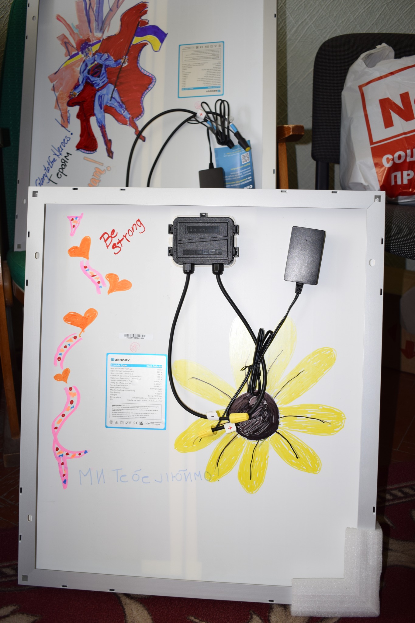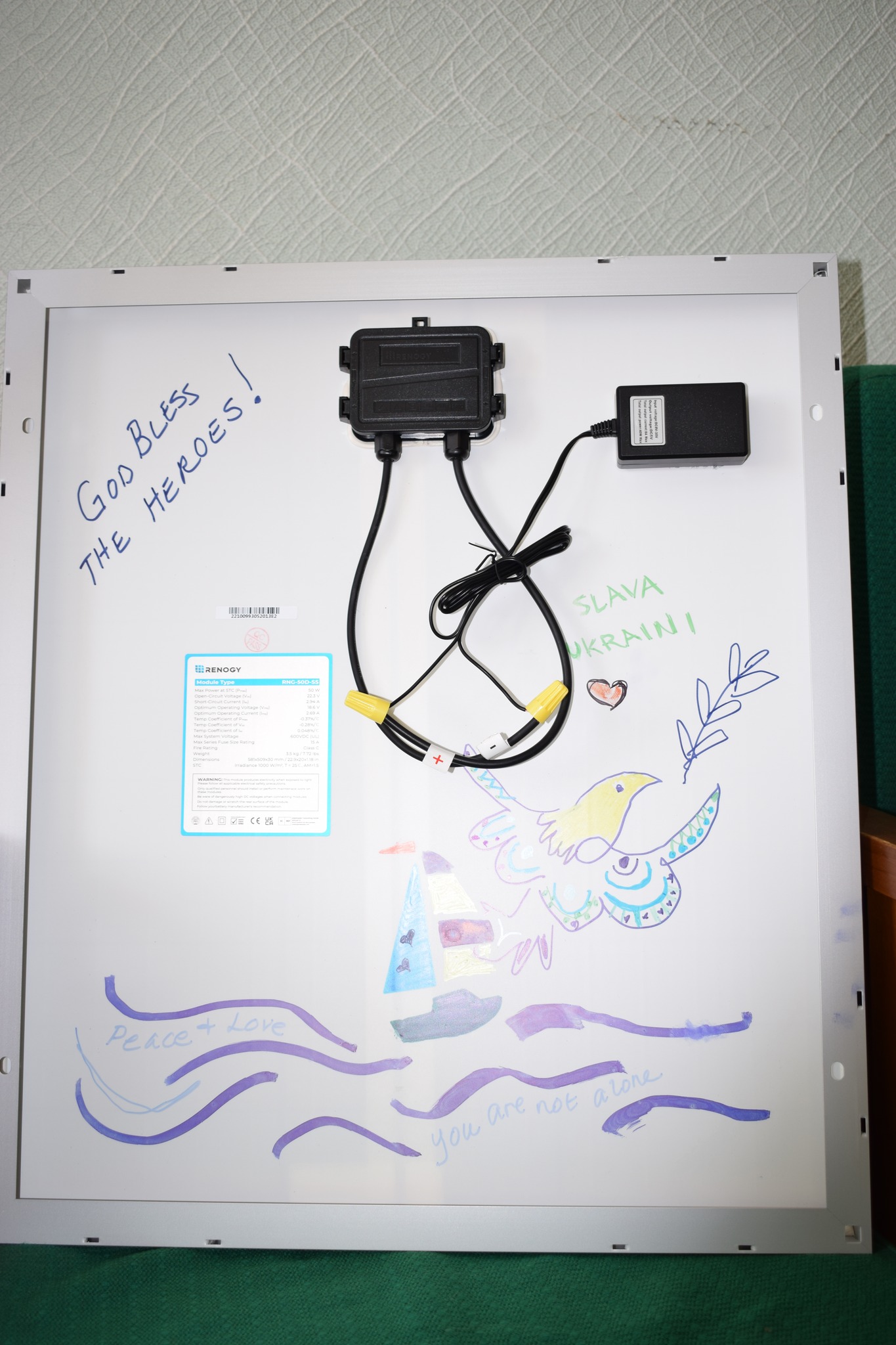 Сонячні батареї доставили разом із теплими побажаннями від дітей, які проживають у місті Кінгстон.