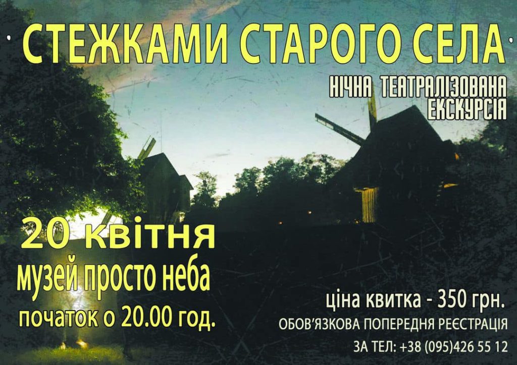 У Чернівецькому музеї народної архітектури та побуту 20 квітня відбудеться нічна театралізована екскурсія. Екскурсія «Стежками старого села» розпочнеться о 20:00.