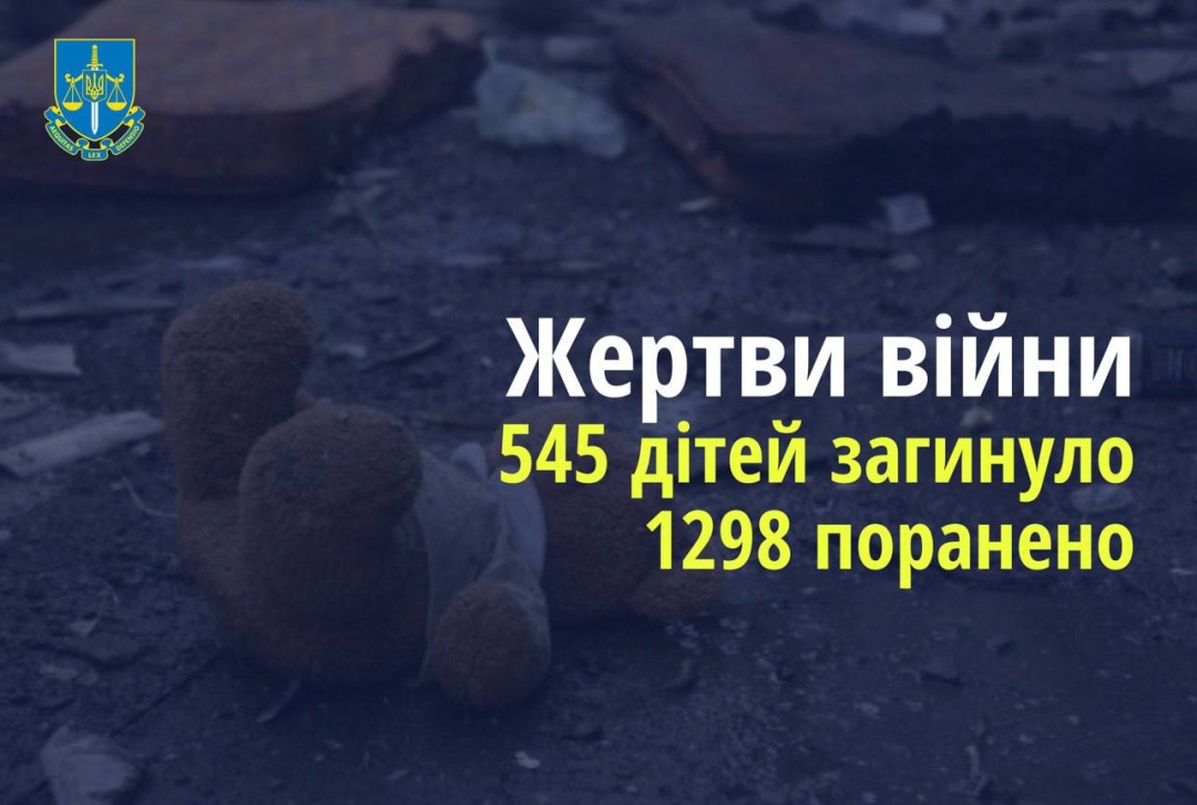 Унаслідок збройної агресії РФ в Україні загинули 545 дітей та понад 1298 дістали поранення.