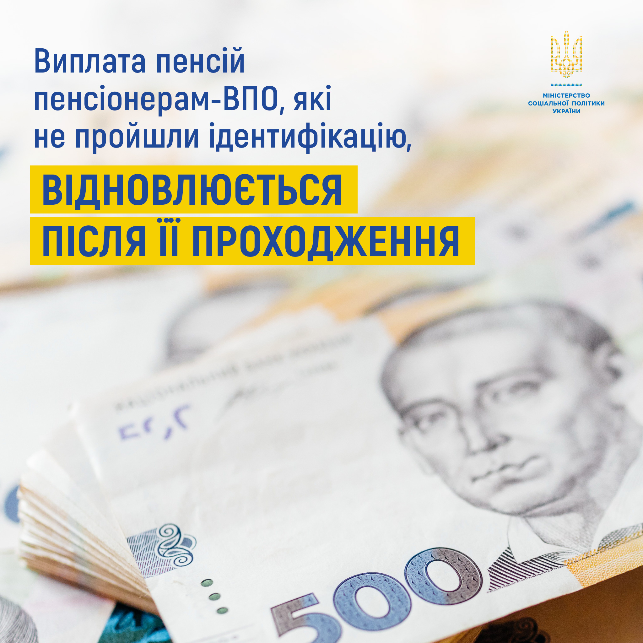 Виплата пенсій пенсіонерам, які стали ВПО до 24 лютого 2022 і не пройшли ідентифікацію, відновлюється після її проходження!