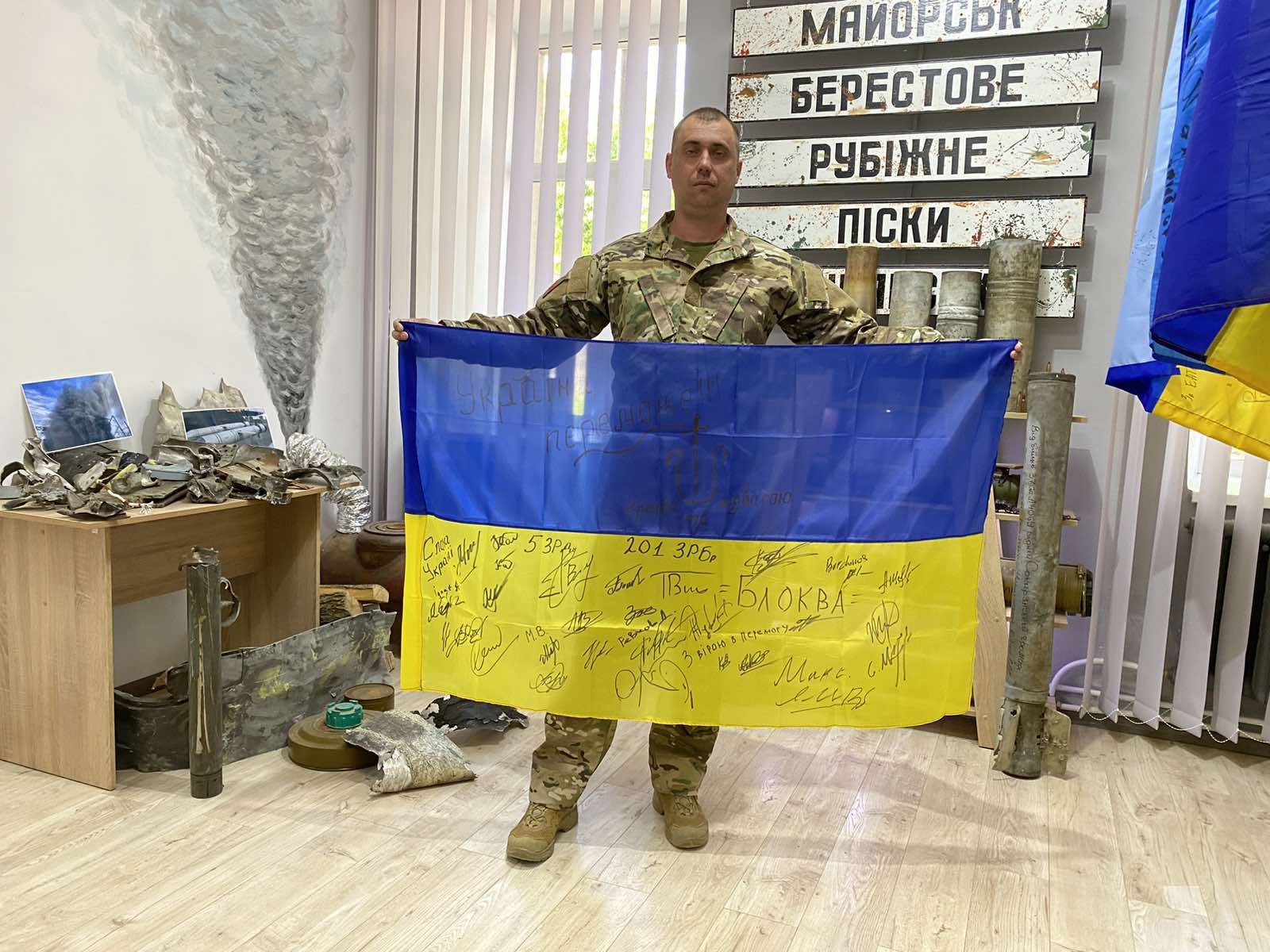 Днями виставкові зали музею поповнились експонатами, які передали українські військові. Зокрема, прапором з побажаннями захисників України та шевроном військової частини, а також елементами військового спорядження.