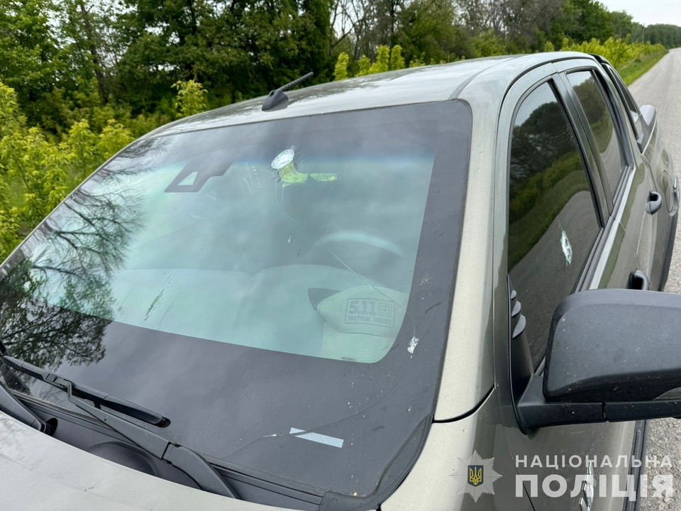 Було влучання у лобове скло, де сидів водій, а також пасажирські вікна та двері, проте поліцейський автомобіль знов в строю та продовжує забезпечувати евакуацію населення.