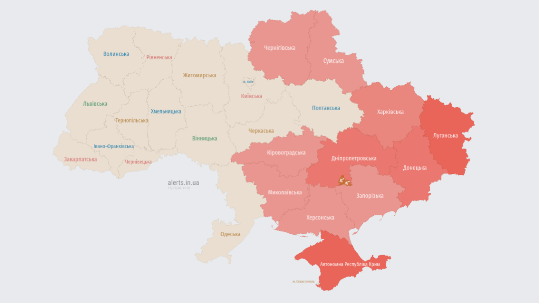 У Києві та області оголошували повітряну тривогу. У східніх та північних областях загроза зберігається.
