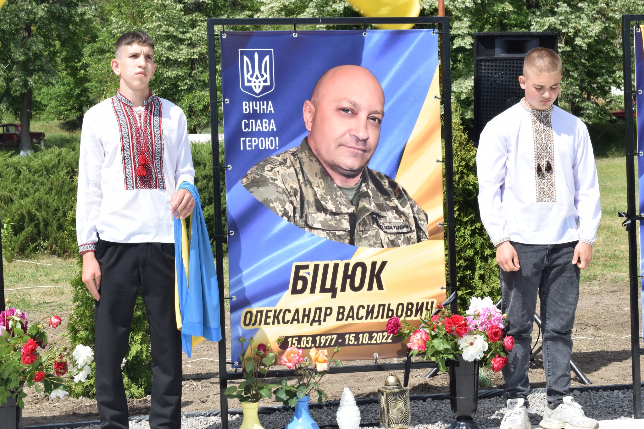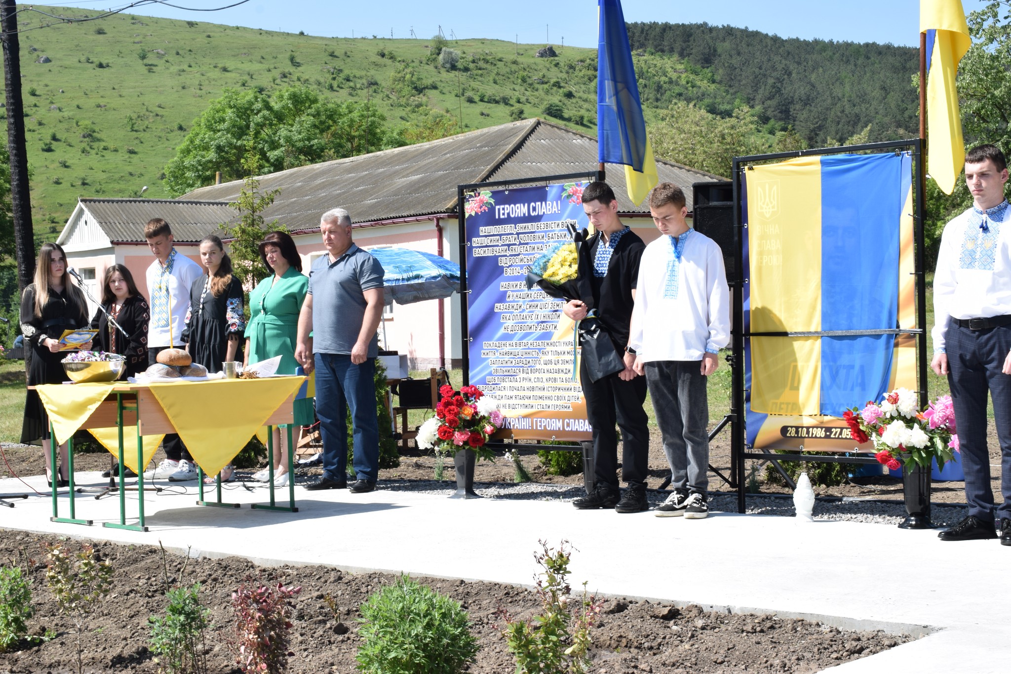 У селі Ожеве банери із портретами загиблих Героїв відкрили рідні воїнів.