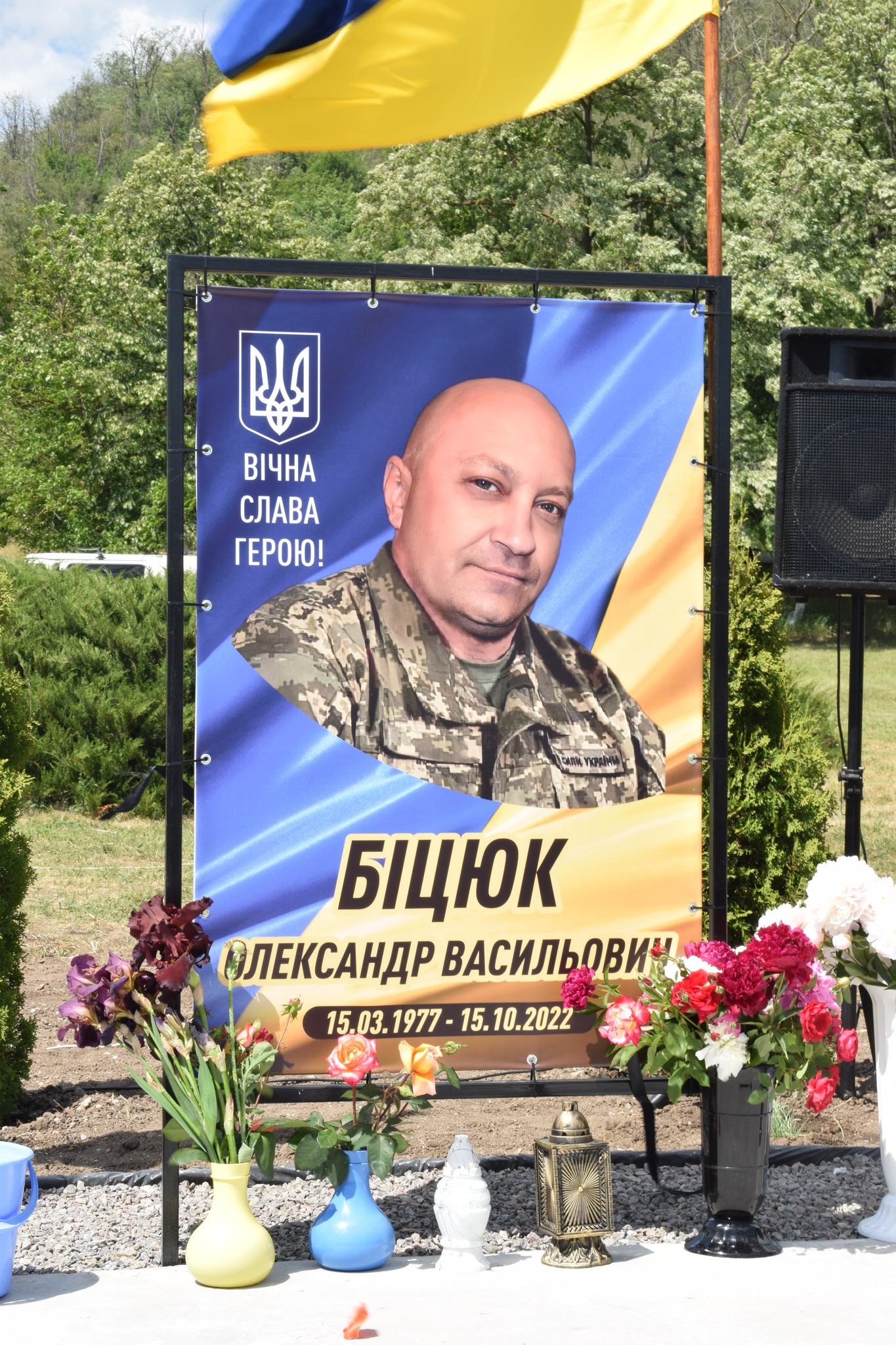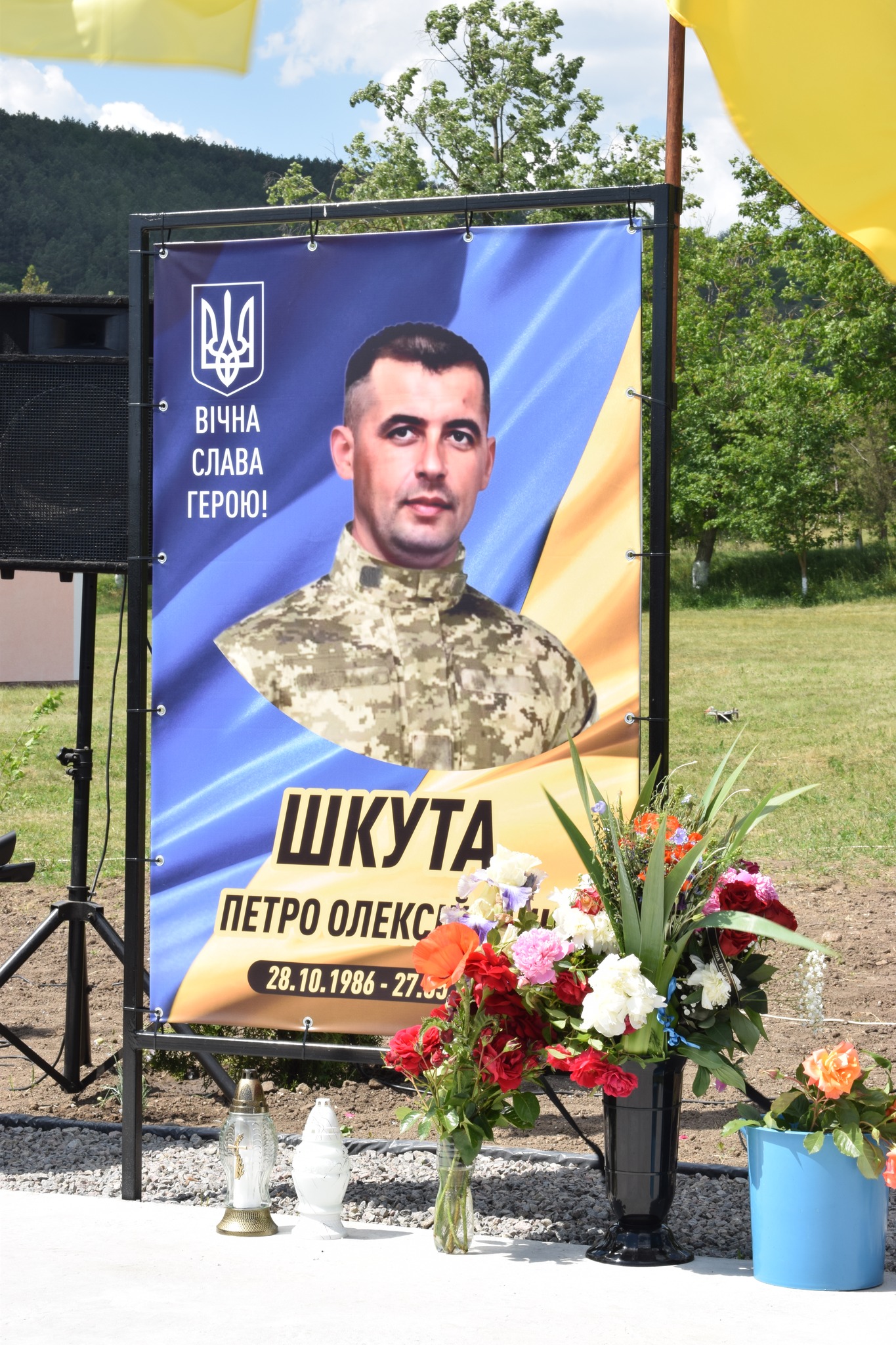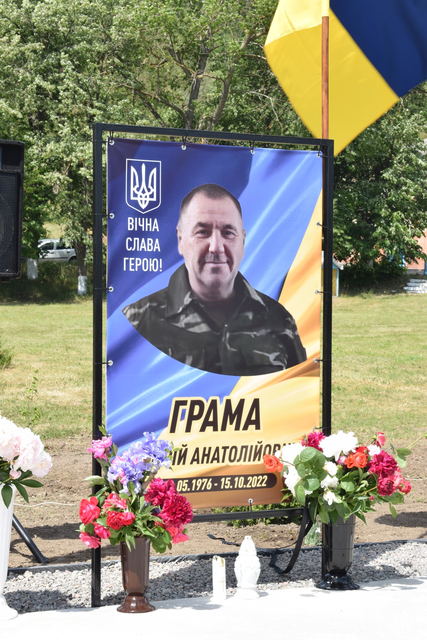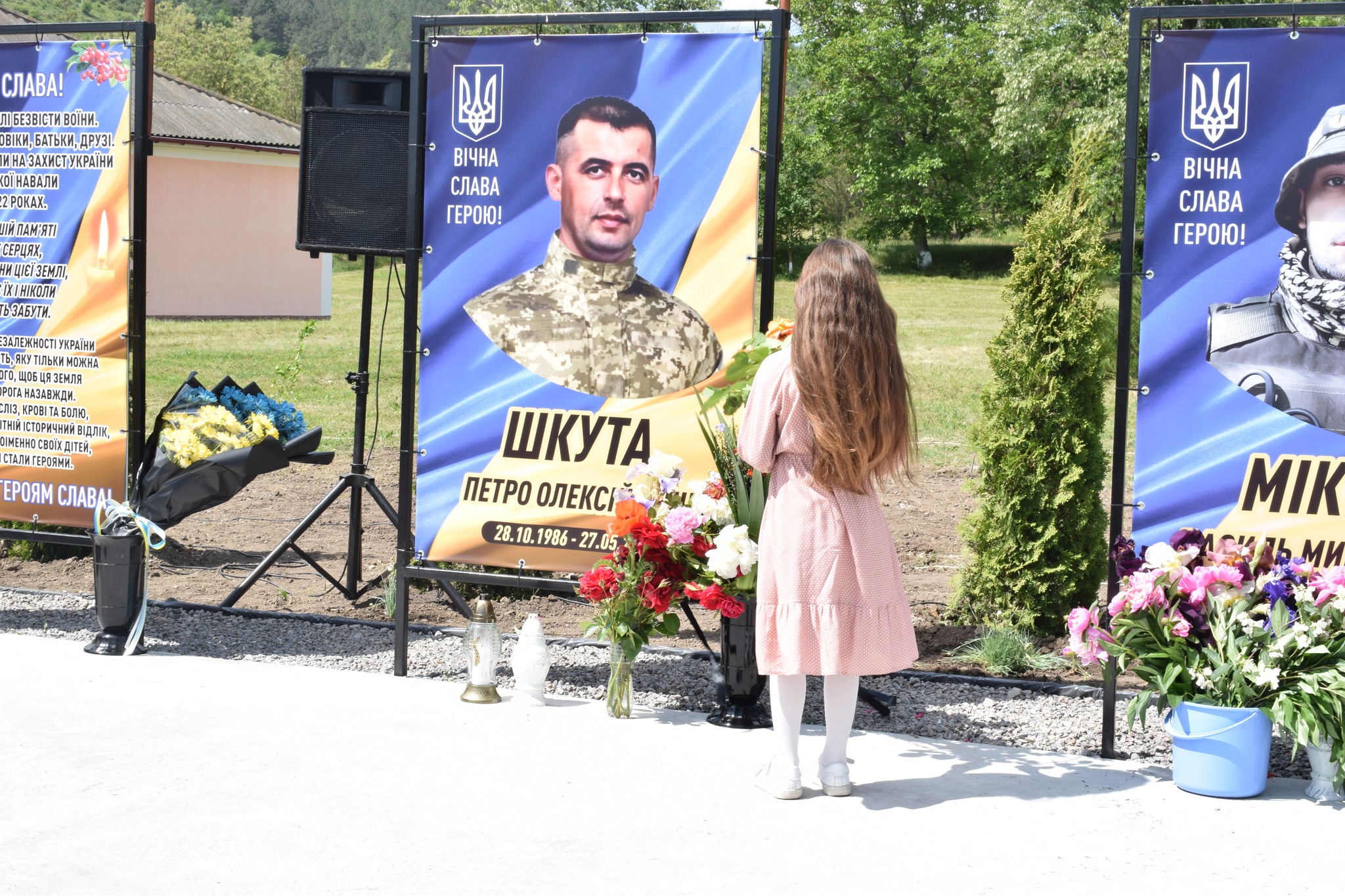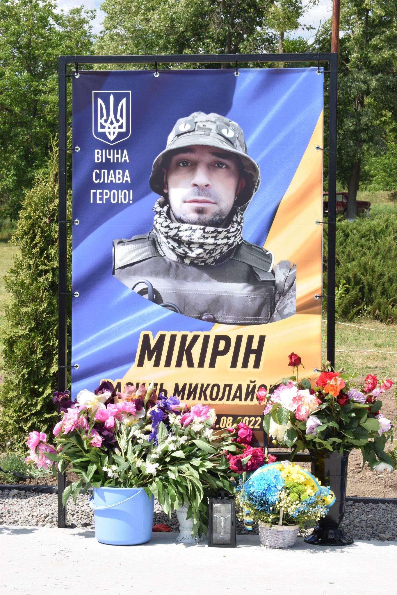 У селі Василівка майорять синьо-жовті стяги над світлинами полеглих… Петра Шкути, Василя Мікіріна, Олександра Біцюка, Радміла Шермана, Андрія Грами, Миколи Колєсніка.