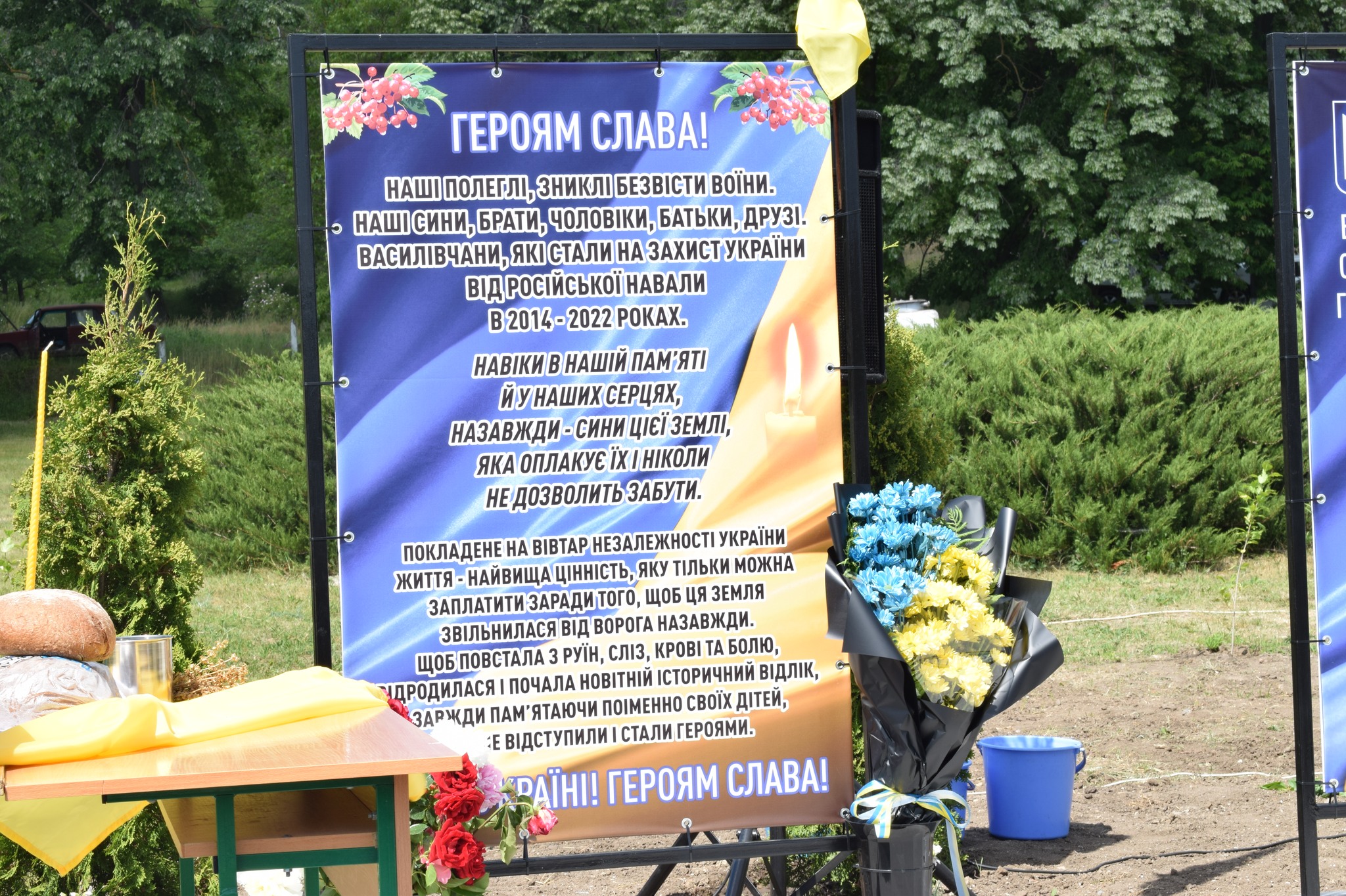 До облаштування пам’ятних місць долучились підприємства, які здійснюють діяльність на території населених пунктів Василівського старостинського округу, члени родин полеглих воїнів, працівники старостату та небайдужі громадяни.