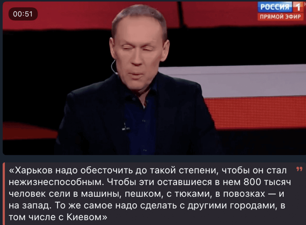 Того ж дня депутат Держдуми Андрій Луговой в ефірі телеканалу «Россия 1» закликав зробити Харків «непридатним для життя». Уривок з його виступу активно поширювали у соцмережах і месенджерах, зокрема в локальних харківських чатах. Ця заява та її поширення були спрямовані на посилення стресу від блекауту та поновлення авіаударів по місту.