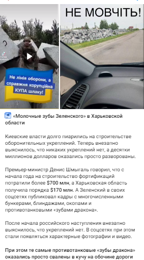 Моніторинг українських соцмереж дозволив росіянам використати у власних цілях теми, які першими порушили українські військові, волонтери та антикорупціонери. Зокрема, критику якості фортифікаційних споруд у прикордонні та повідомлення про залишення позицій бійцями окремих підрозділів. Росіяни інформаційно відпрацювали також зміну командувача оперативно-стратегічного угруповання «Харків», що відбулася 11 травня.