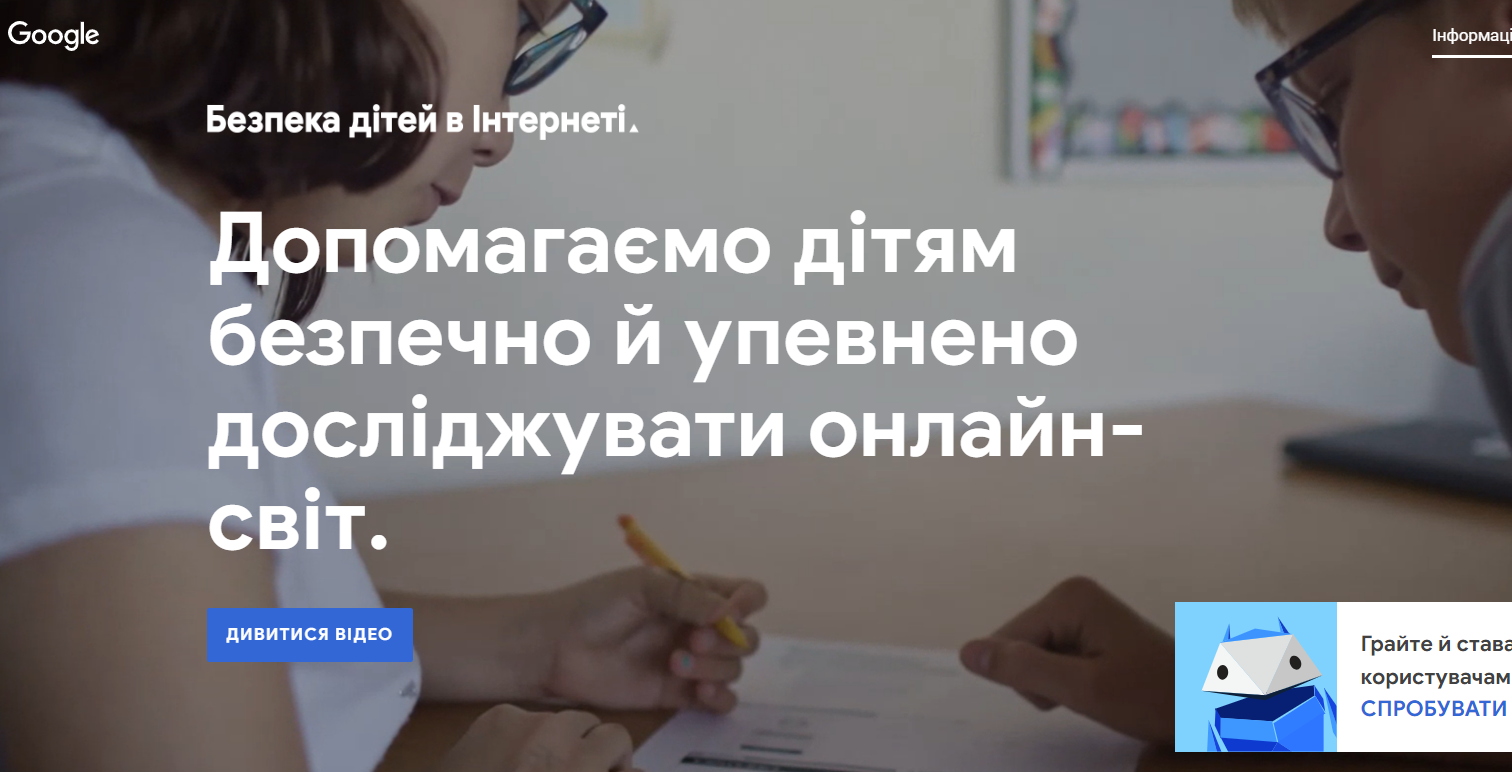 Нещодавно Google представив в Україні нову платформу «Безпека дітей в Інтернеті», яка покликана забезпечити дітей, підлітків, батьків та вчителів корисними інструментами та ресурсами для підвищення онлайн-безпеки.