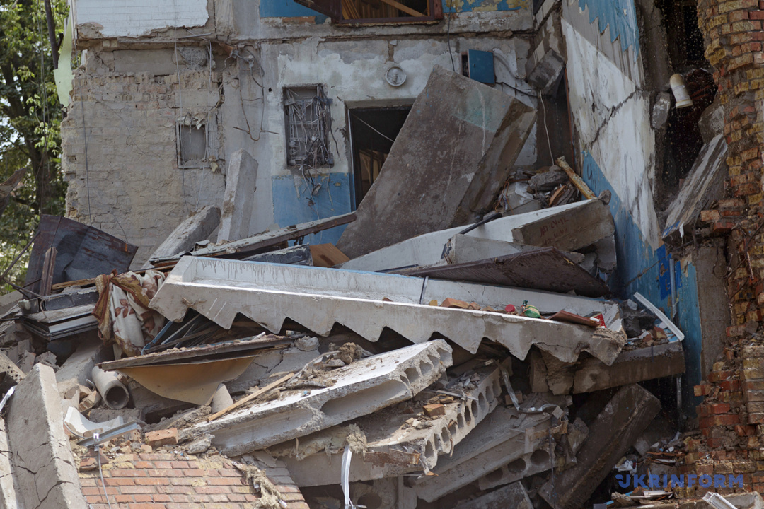 У Шевченківському, крім будівель «Охматдиту», пошкоджено багатоповерховий житловий будинок. Зруйновано щонайменше 17 квартир. Повністю знищений один підʼїзд. Кілька – сильно пошкоджені. Зачепило і будинок навпроти.