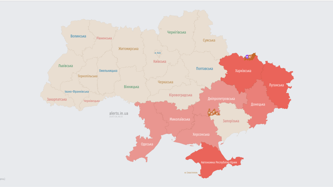 На півдні спостерігається рух ударних БПЛА, у кількох областях оголосили повітряну тривогу.