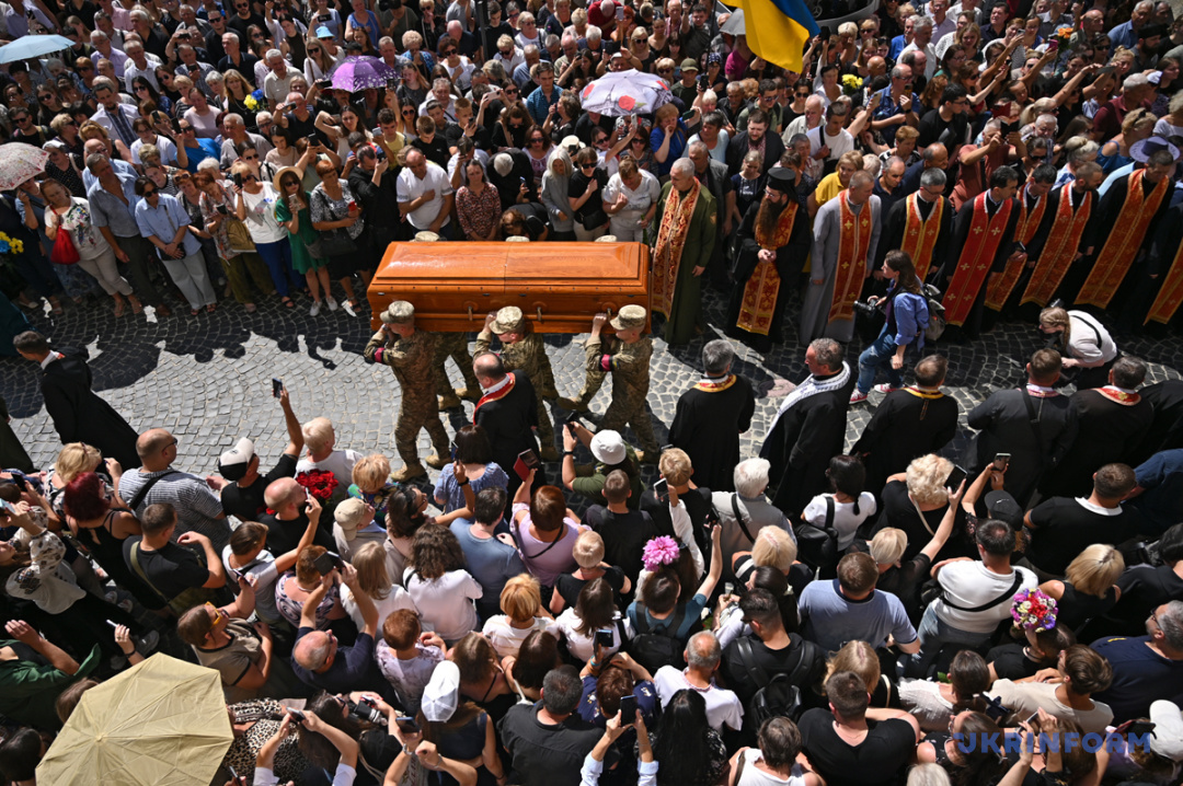 Похоронна процесія прямує до Личаківського кладовища для поховання мовознавиці, громадської діячки Ірини Фаріон, яку вбили пострілом у голову 19 липня, Львів, 22 липня 2024 року.