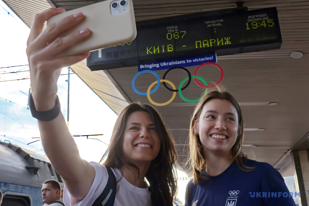 Фехтувальниця на шпагах Влада Харькова (ліворуч) під час проводів національної збірної команди України з дзюдо та фехтування на шпагах серед жінок на літні Олімпійські ігри 2024 у Парижі, Київ, 24 липня 2024 року.