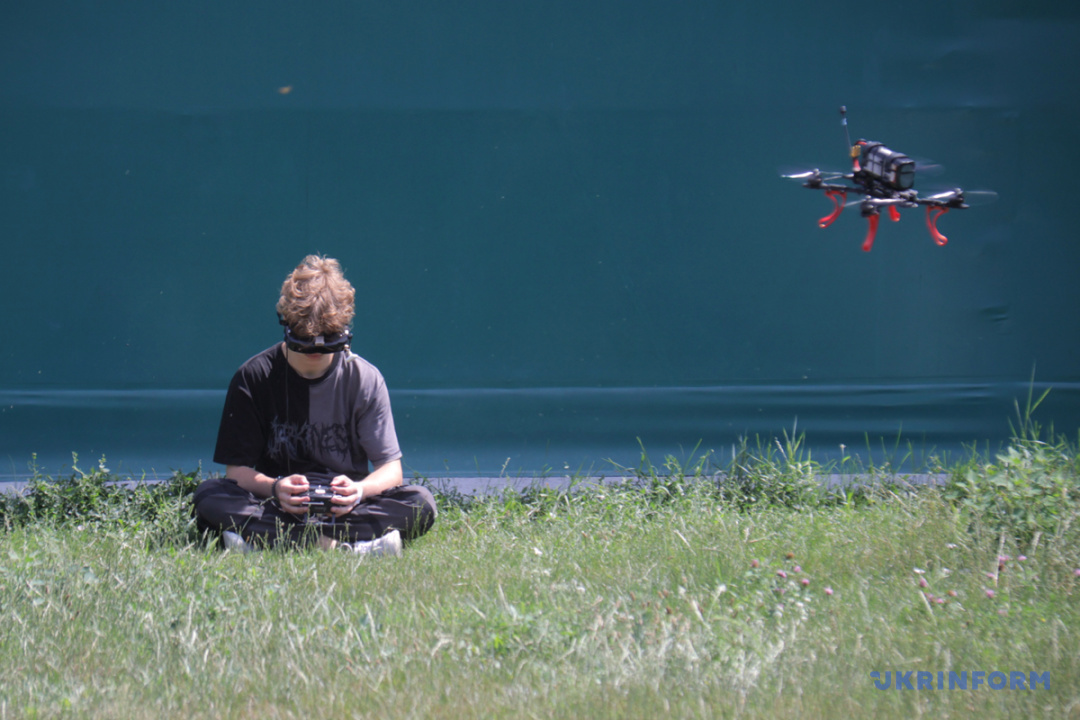 Учасник ІІ турніру Федерації Військово-технологічного спорту України з перегонів БПЛА керує дроном, Білогородка, Київська область, 21 липня 2024 року.