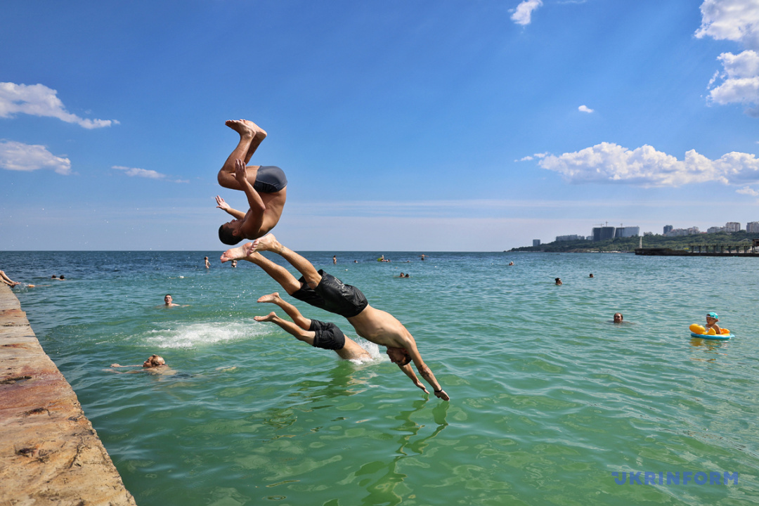 Хлопці пірнають у море, Одеса, 23 липня 2024 року.