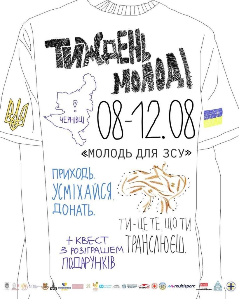 У Чернівцях до 12 серпня триватиме тиждень молоді під гаслом «Молодь для ЗСУ». У рамках фестивалю-конкурсу виступлять вокалісти й танцюристи з Чернівців та інших українських міст.