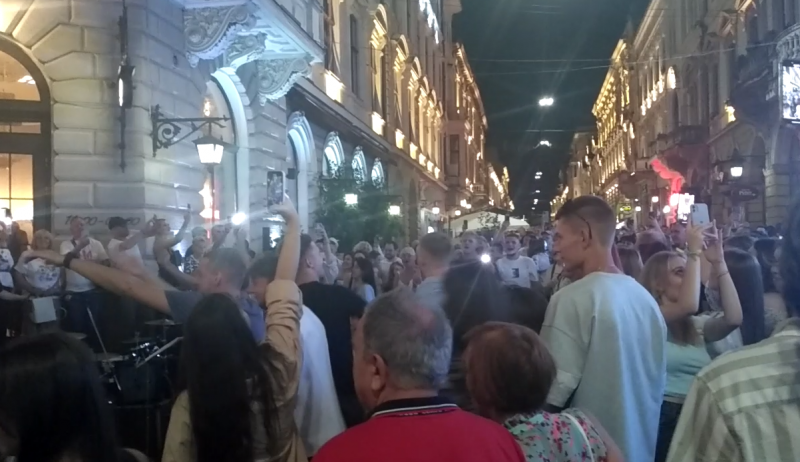 Cпівати люди почали після завершення концерту вуличних музикантів, яких запросив ресторан поряд. Глядачі просили музик, щоби ті “на біс” виконали “Червону руту”. Врешті почали співати самі, доєднувалося все більше голосів, багато молоді.