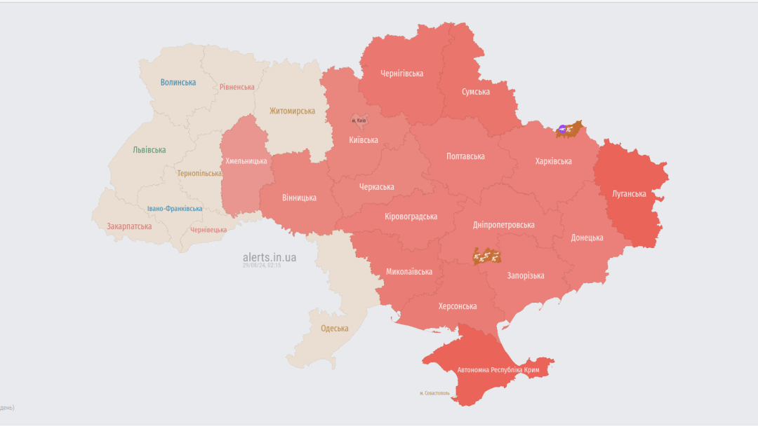 У Києві та низці областей повітряна тривога, на Київщині працює ППО