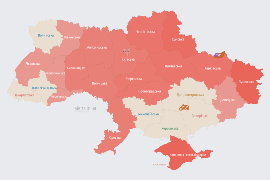 У столиці та багатьох регіонах оголошено повітряну тривогу.