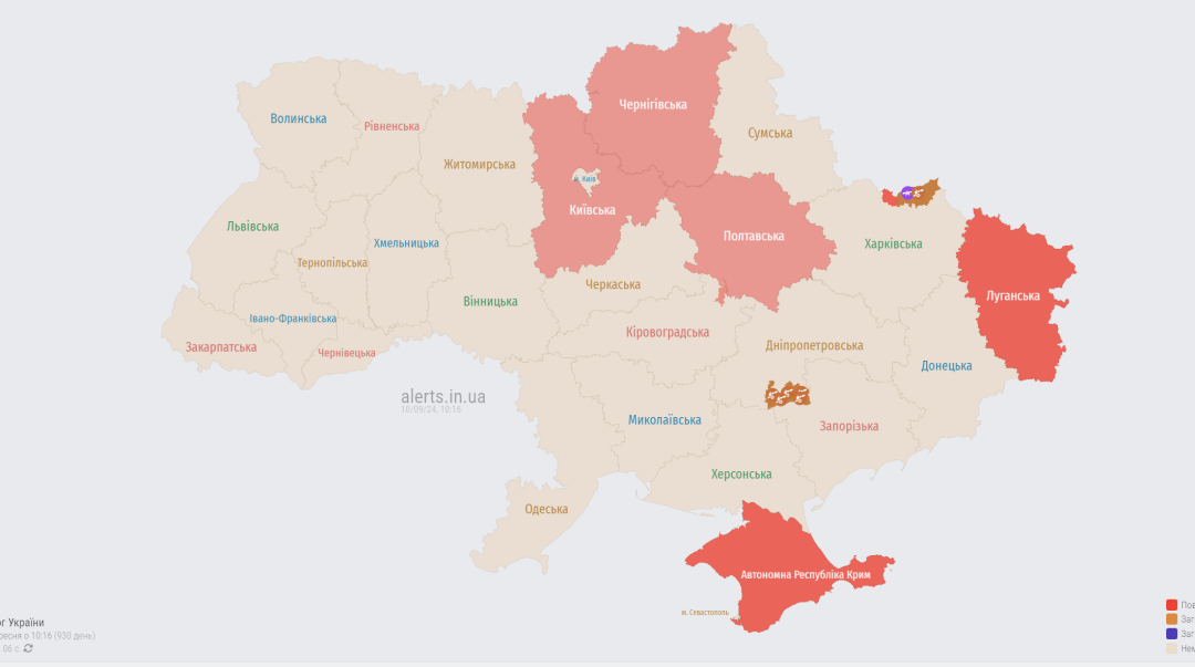 У Київській, Чернігівській, Полтавській областях була оголошена повітряна тривога.
