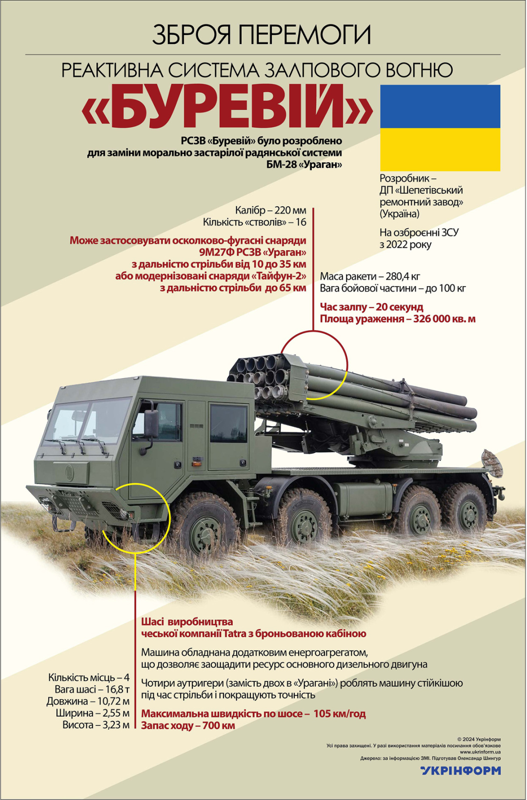 ІНФОГРАФІКА. Зброя перемоги: реактивна система залпового вогню «Буревій».