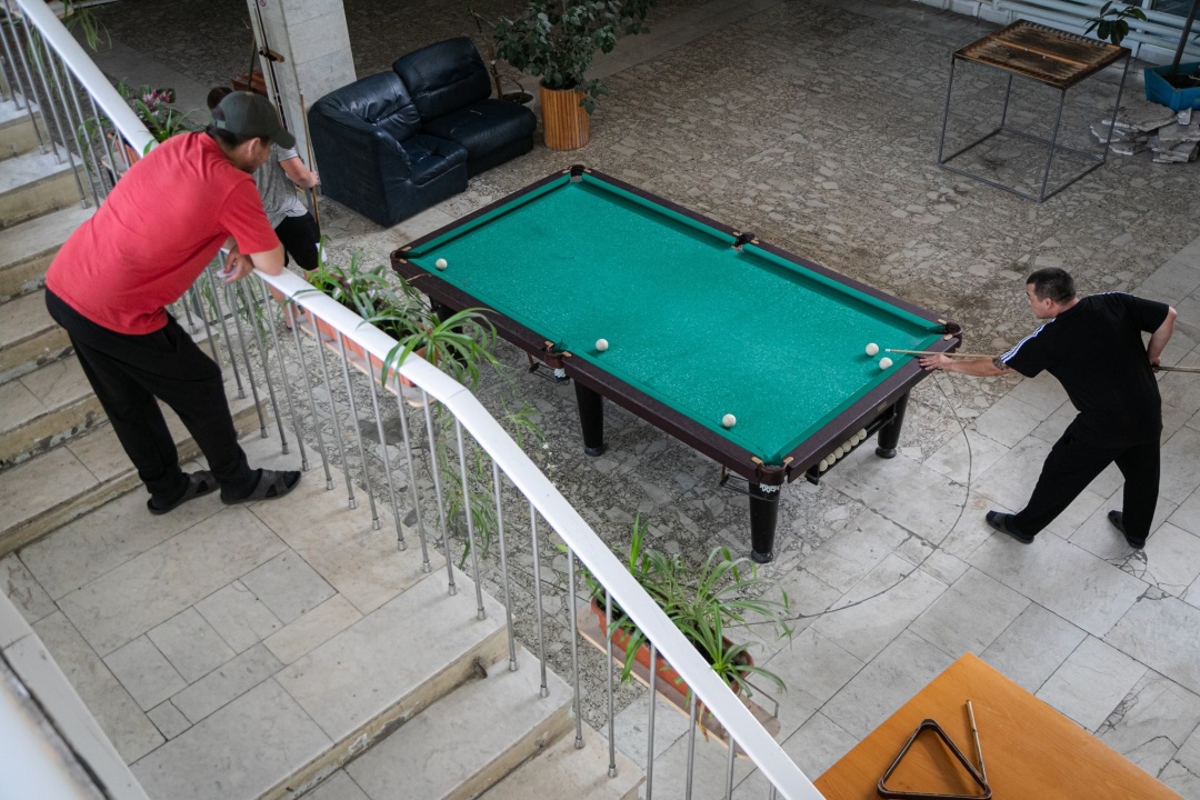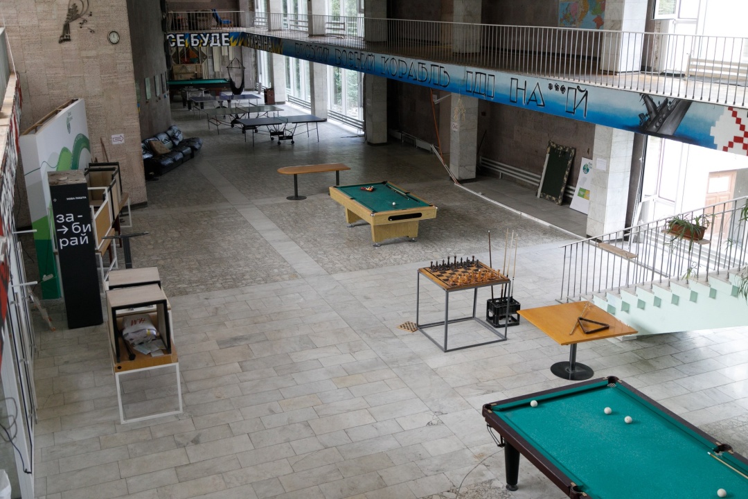 У холі Центру психічного здоров'я та реабілітації «Лісова поляна» стоїть більярд і велика шахова дошка із розставленими фігурами. Великі літери надихають: все буде Україна! Трохи меншими – вказано курс «русскому военному кораблю»…