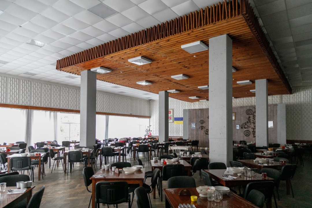 Ніби портал у півстолітню минувшину – планування й оздоблення їдальні. На одній зі стін на другому поверсі центру висить карта… афганської столиці Кабулу з дарчим написом 2003 року – як згадка про те, що заклад перепрофілювали з 1989 року для тих, хто був у складі «обмеженого контингенту» в Афганістані.