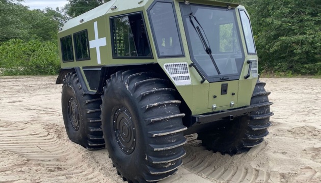 Зазначається, що всюдихід-амфібію розроблений українськими інженерами. «Машина здатна працювати на будь-якій місцевості: болотах, плавнях, глибокому снігу, та навіть під час виїзду з води на кригу. Завдяки своїм невеликим габаритам і можливості розвертатися на місці всюдихід ефективно маневрує в обмеженому просторі», – йдеться в повідомленні.