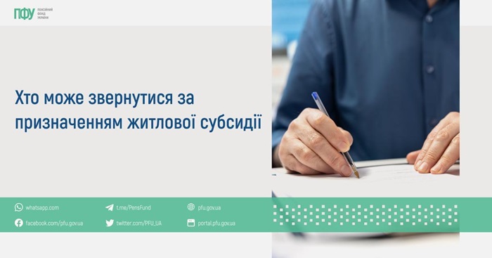 Хто може звернутися за призначенням житлової субсидії – інформує Пенсійний фонд України
