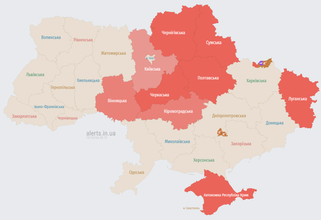 У Київській області та ще в низці регіонів України оголошена повітряна тривога.