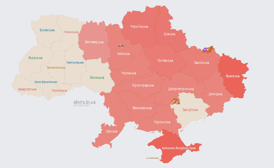 Про це повідомляє Укрінформ із посиланням на мапу повітряних тривог та Київську МВА.