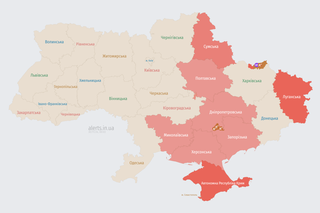 У зв'язку з цим у низці регіонів оголошено повітряну тривогу.
