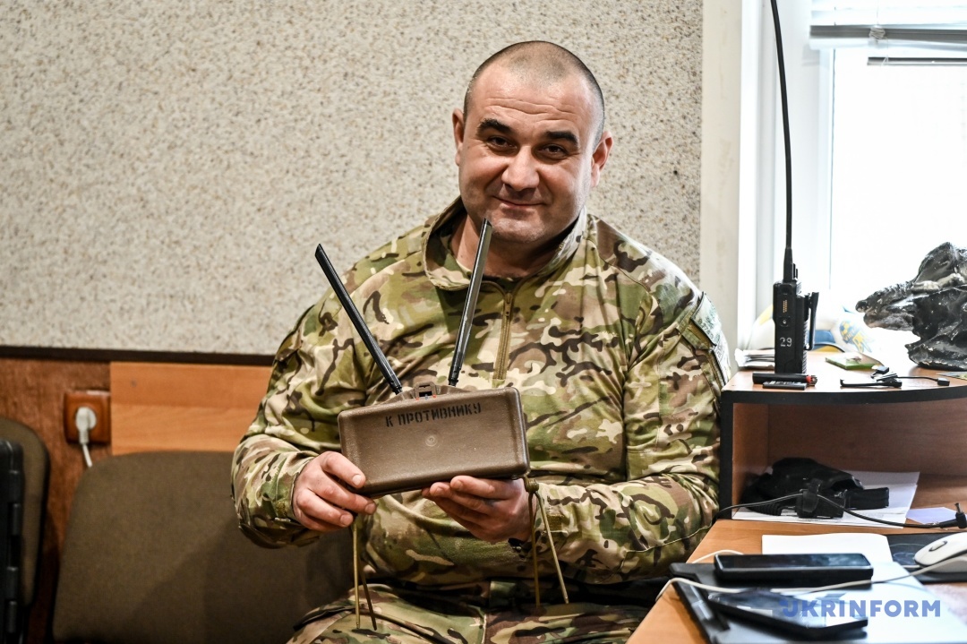 Уже без жартів він каже: скид з дрона – страшна зброя. Якщо в момент його вибуху людина буде стояти, то поранення отримає – сто відсотків.