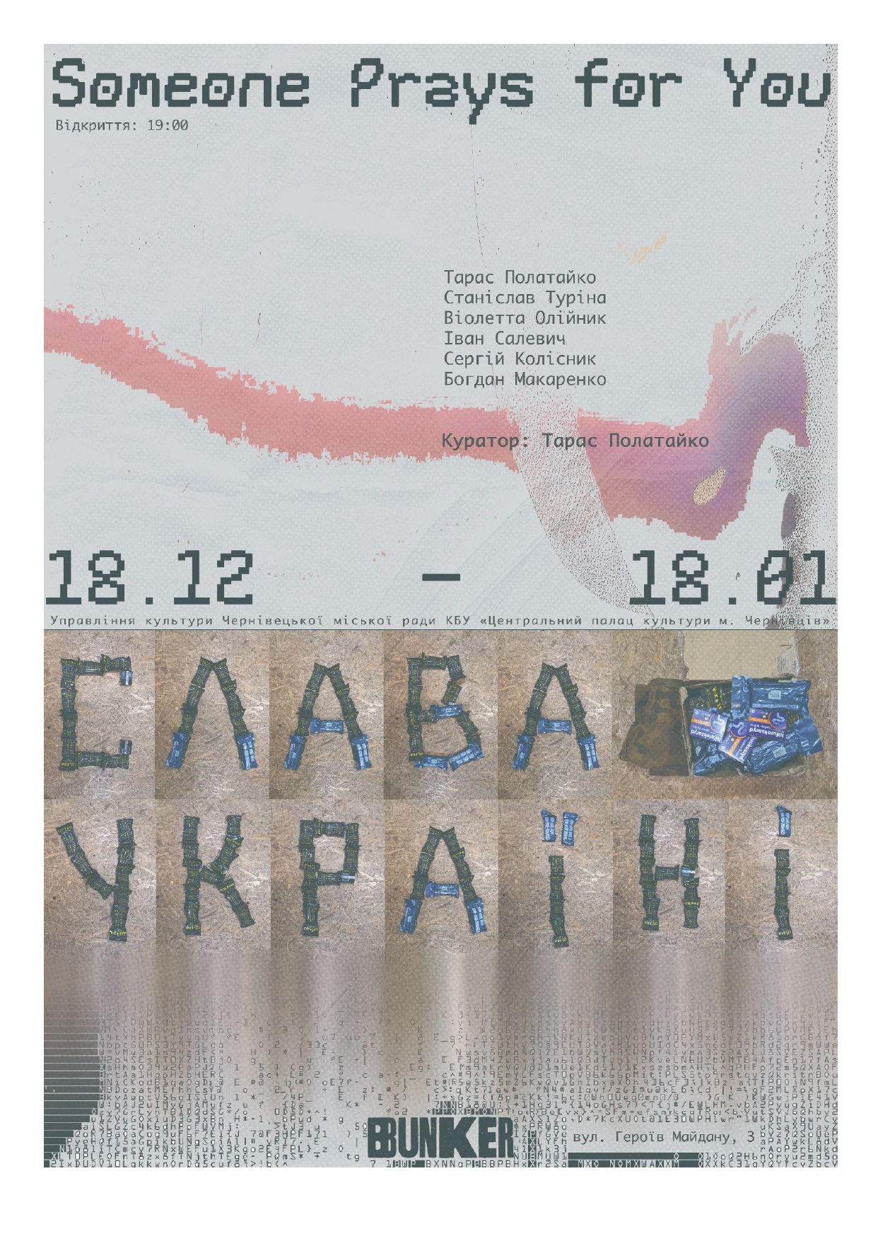 У Чернівцях відбудеться відкриття виставки «Someone Prays for You» («Хтось молиться за тебе» – з англ.). Захід проведуть завтра, 19 грудня, о 19:00 в міждисциплінарному мистецькому центрі «Bunker», що на вулиці Героїв Майдану 3.