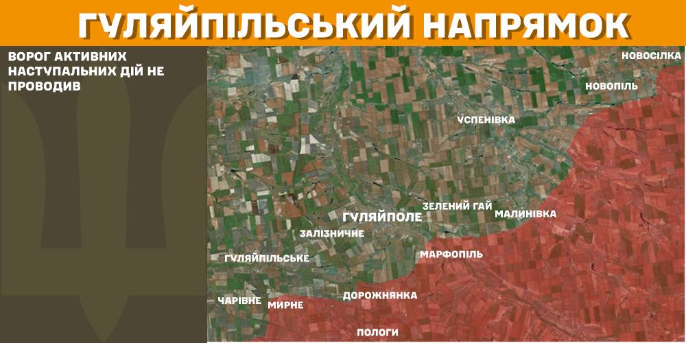 На Гуляйпільському і Придніпровському напрямках минулої доби ворог активних наступальних дій не проводив.