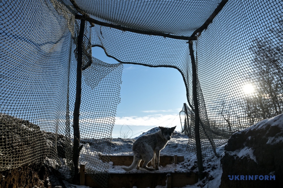 Приїхавши до розрахунку FH70, намагаємося не маячити та швиденько йдемо за військовими. Нас проводжають дві собаки, одну з них хлопці називають Муха Іванівна. Вона маленька, добра і постійно ластиться. Проте, кажуть хлопці, чужих бачить одразу. Із ними також живе кішка «Багіра». Чотирилапих військові забрали фактично з вулиці, їхні господарі вимушено залишили домівки.