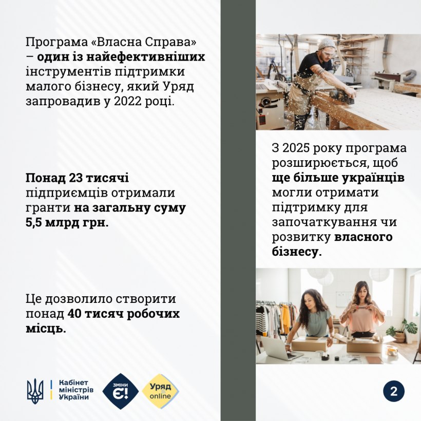 Уряд розширив умови грантової програми «Власна Справа», щоб допомогти ще більшій кількості українців започаткувати чи розвинути власний бізнес.
